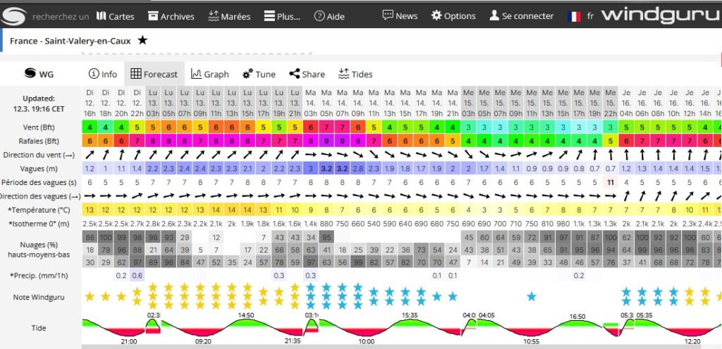 Si le soleil est une des composantes pour la prévision d’une sortie en mer, la force du vent et l’état de la mer en sont des composantes essentielles. La hauteur de marée sera à vérifier auparavant, pour ceux, qui comme dans le port de ST VALERY EN CAUX (Seine-Maritime) en sont tributaires.